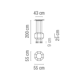 Подвесные светильники Vibia. Wireflow 0403, арт 0403-04-1A, цвет черный, диммируемый, H=2000 мм D=550 мм, под лампы 8xLED 4,5W 2700K 3922lm CRI>80 350mA.