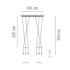 Подвесные светильники Vibia. Wireflow Lineal 0338, арт 0338-04-1B Vib, цвет черный, диммируемый, H=2500 мм L=1430 мм, под лампы 6xLED 4,5W 2700K 2942lm CRI>80 350mA.