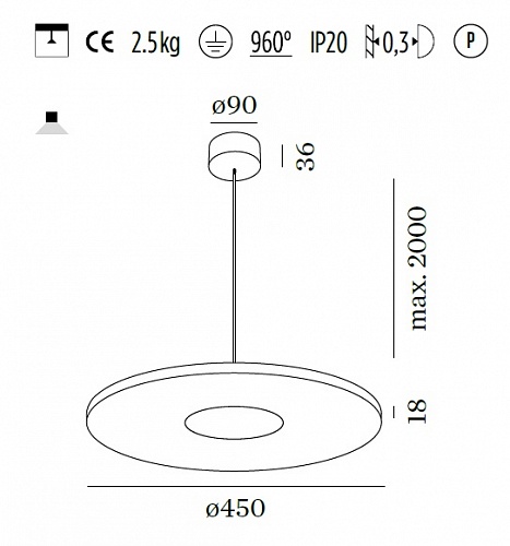 Подвесные светильники Wever Ducre. NOA 4.5, арт 204383W2 WD, цвет белый, под лампу LED 10W 220V 2700K CRI>80 550lm