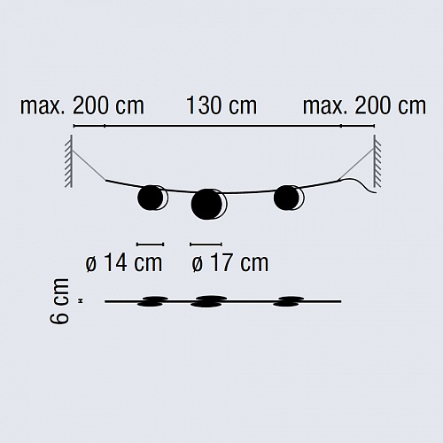 Подвесные уличные гирлянды Vibia. June 4730, арт 4730-54-10, цвет коричневый, L=1300 мм, степень защиты IP65, под лампы 3xLED 1W 350mA.