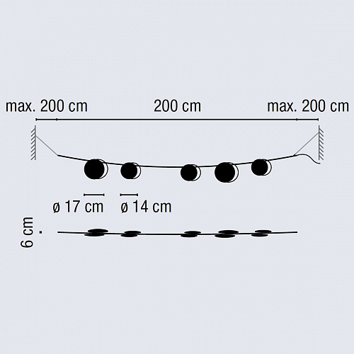 Подвесные уличные гирлянды Vibia. June 4735, арт 4735-54-10, цвет коричневый, L=2000 мм, степень защиты IP65, под лампы 5xLED 1W 350mA.