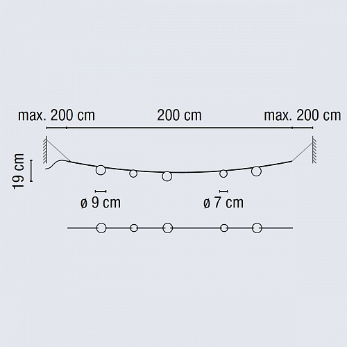 Подвесные уличные гирлянды Vibia. June 4750, арт 4750-54-10, цвет коричневый, L=2000 мм, степень защиты IP65, под лампы 5xLED 1W 350mA.