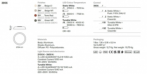 Потолочные светильники Vibia. Bigger 3905, арт 3905-53-81, цвет зеленый, D=840 мм, под лампы 4xLED QUADRANT 13,1W 1800K-4000K 6046lm-7404lm 1040mA CRI>90.