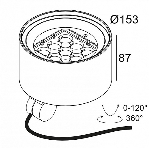 Встроенный источник света и блок питания. Укомплектован кабелем H05 RN-F 3 x 1mm² 6000 мм.