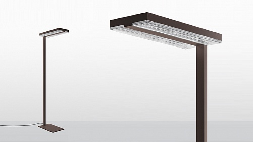 Напольный светильник прямого-отраженного освещения. Оптика выполнена из прозрачного поликарбоната + PRISMOPTIC диффузор. Световой коэффициент до 77%. Распределение света: 34% прямых и 66% косвенных.