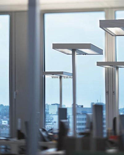 Основание светильника стальное. Оптический блок и шест из экструдированного алюминия. Диффузор COMFORT - закаленное стекло 4мм толщиной с шелкографией. Световой коэффициент 40%. Распределение лучей света: 83% косвенные и 17% прямые.