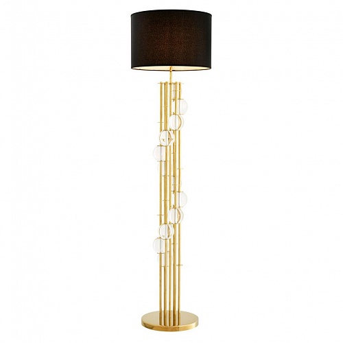 Торшеры EICHHOLTZ. LORENZO, арт 110356, золотая отделка, прозрачный хрусталь, черный абажур, H=1760 мм D=480 мм, под лампу E27 60W.