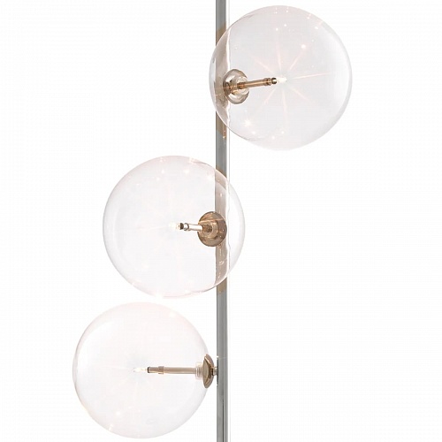 Этот современный торшер придаст по-настоящему современный вид вашей гостиной или спальне. Он оснащен 5 сферическими плафонами из прозрачного стекла и металлическим светильником с отделкой из никеля и цилиндрическим основанием из черного мрамора для создания яркого контраста.