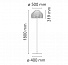 Рассеянный свет торшера. Внешний рассеиватель из поликарбоната. Внутренний рассеиватель из опалового поликарбоната с литьевой печатью. Опора и основание из окрашенной стали.