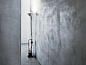 Торшер, обеспечивающий непрямое освещение. Угловое железо и формованное стальное основание, окрашенные в различные цвета. Шестигранный стержень из никелированной латуни с регулируемой высотой и телескопической головкой.