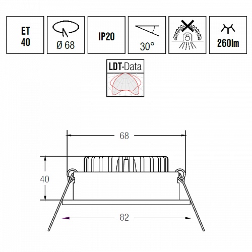 Регулируемый наклон до 30°. Угол рассеивания луча 38°.