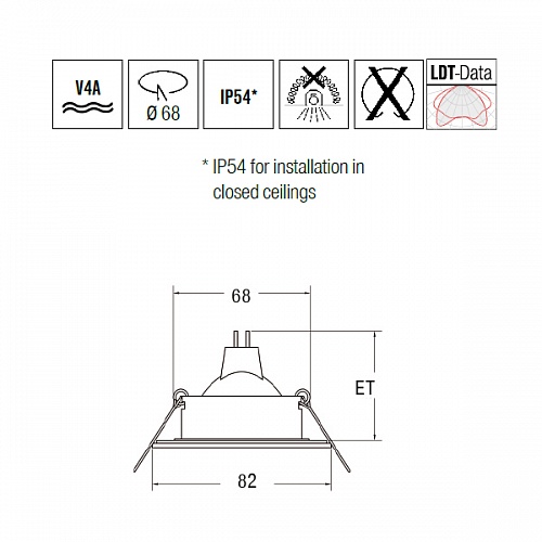 Встраиваемые потолочные споты Brumberg. 26004220, арт 36004220, цвет нержавеющая сталь, степень защиты IP54, под лампу GU10 QPAR51 50W 220V.