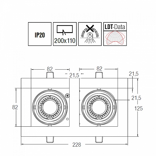 Встраиваемые потолочные споты Brumberg. 46004/88457173, арт 46004020, цвет хром, под лампы 2xGX5,3 QRCBC51 50W 12V.