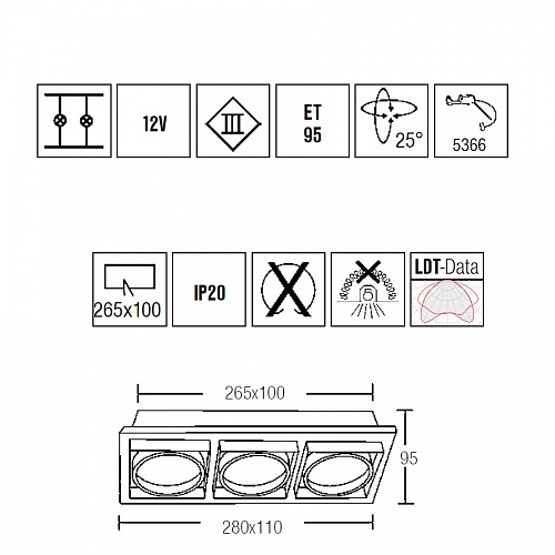 Встраиваемые потолочные споты Brumberg. 512543/12163253/33163253, арт 512543, цвет полированный алюминий, L=280 мм, под лампы 3xGX5,3 QRCBC51 50W 12V.