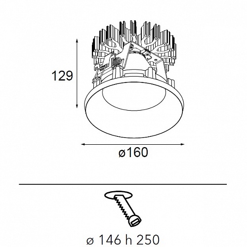 Встраиваемые потолочные светильники Modular. SMART KUP 160 IP54 LED GE, арт 13024409, цвет белый, отражатель средний, луч 25°, под LED Array 42W 1200mA 3000K CRI90+