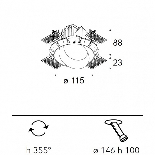 Встраиваемые поворотные потолочные споты Modular. WINK ASY 115 LED SPREADLIGHT GE, арт 13071932, цвет черный, IP54, под LED Array 16.2W 500mA 2700K CRI90+