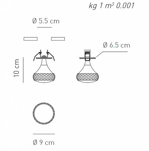 Металлическая конструкция в хромированной отделке. Стеклянные плафоны доступны в трех цветах: хрусталь, янтарь и серый.