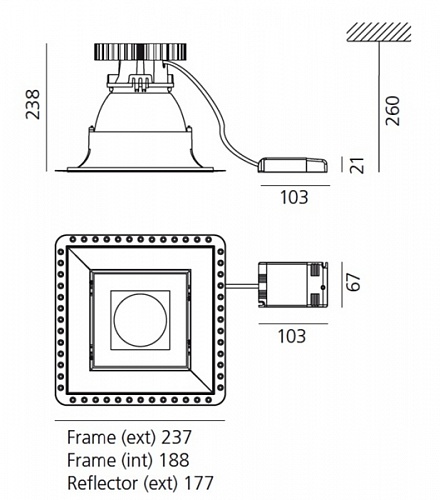 Встраиваемые светильники Artemide. LUCERI KADRO LED TRIMLESS ROUNDED EDGE TRIM, арт 241400M, цвет белый, под лампу LED 26W 3000K 1950lm 2x29°.