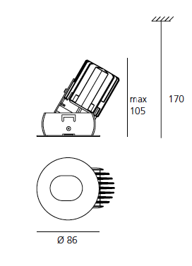 Встраиваемые светильники Artemide. RASTAF 86 LED круглый регулируемый, арт 038605M, цвет белый, под лампу LED 13W 3000K 1200lm 2x12°.