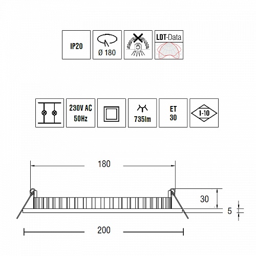 Встраиваемые светильники Brumberg. 12017073/12174073, арт 12174073, цвет белый, диммируемый 1-10V, диаметр 200 мм, под лампу SMD-LED 11W 3000K 735W 220V.