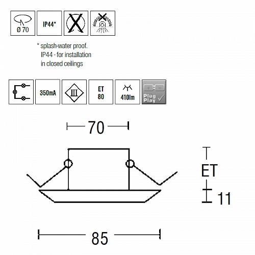 Встраиваемые светильники Brumberg. 2671-02, арт 12151023, цвет хром, степень защиты IP44, под лампу LED 6,6W 2700K 410K 350mA.