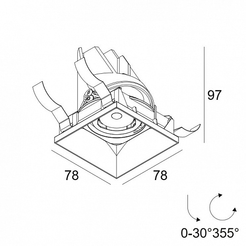 Встраиваемые светильники Delta Light. ENTERO SMALL SQUARE TRIMLESS 92745, арт 285259230B, цвет черный, под лампу LED 12,4W 2700K 1467lm CRI>90, 700mA, угол луча 45°.