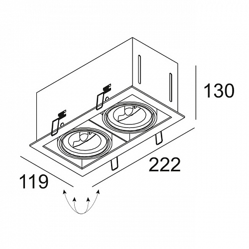 Встраиваемые светильники Delta Light. MINIGRID IN 2 QR, арт 202720002A-B, цвет серый алюминий-черный, под лампу 2x QR-LP70 BA15d max. 50W.