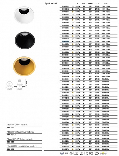 SYNCH - это углубленный встраиваемый светильник, имеющий несколько уровней мощности и степеней раскрытия. Он является поворотным. Разработаны для обеспечения высокого визуального комфорта. Более подробную информацию о различных версиях этого светильника смотрите на фото.