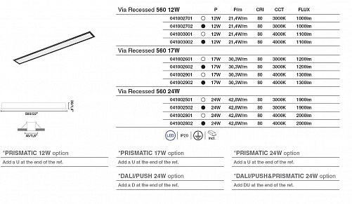 Встраиваемые светильники Faro. VIA RECESSED 560 мм, арт 041002702, цвет черный, под лампу SMD LED 12W 3000K 1000lm CRI 80.