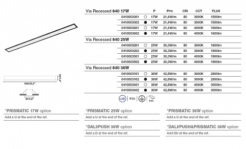 Встраиваемые светильники Faro. VIA RECESSED 840 мм, арт 0410003302, цвет черный, под лампу SMD LED 17W 3000K 1500lm CRI 80.
