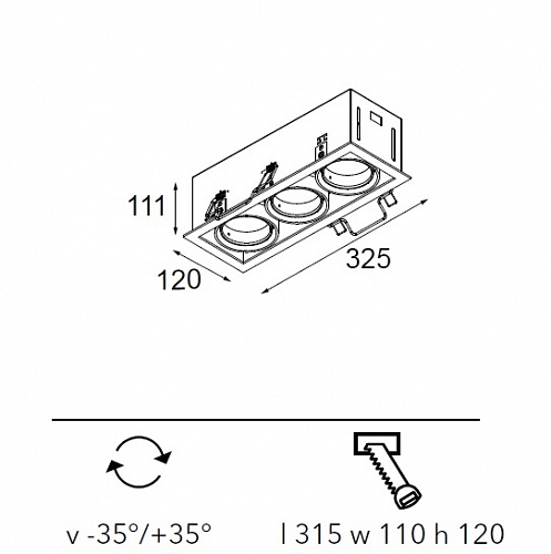 Встраиваемые светильники Modular. MINI MULTIPLE FOR SMART RINGS 3X LED GE, арт 12526105, поворотные, цвет алюминий/черный, под 3xLED Array 9.2W 500mA 3000K CRI90+