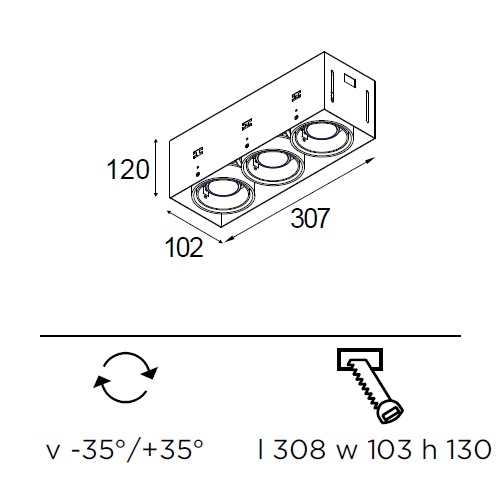 Встраиваемые светильники Modular. Mini-multiple trimless 3Lx ES50, арт 10382202, цвет черный, под лампу 3x QPAR 16 Gu10 max. 50W.