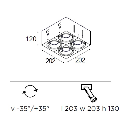 Встраиваемые светильники Modular. Mini-multiple trimless 4SQx ES50, арт 10381909, цвет белый, под лампу 4x QPAR 16 Gu10 max. 50W.