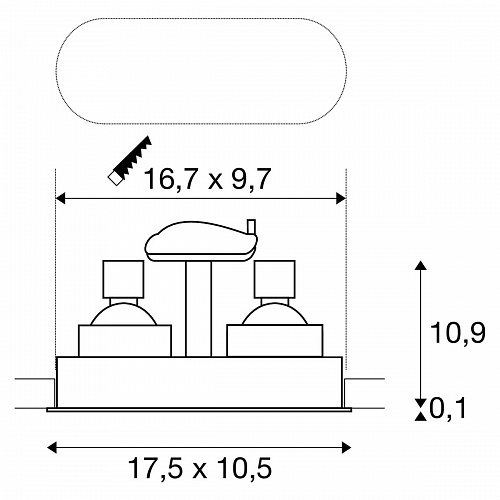 Встраиваемые светильники SLV Marbel. HORN DOUBLE QPAR51, арт 1006121, светильник встраиваемый для 2-х ламп GU10 по 25Вт макс., матовый черный.