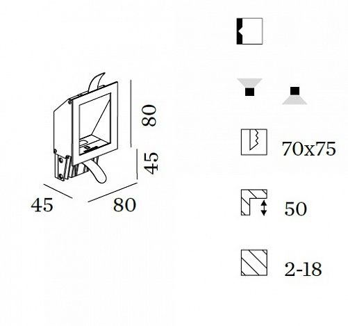 Встраиваемые светильники Wever Ducre. THEMIS CARRE 0.8, арт 303171S4 WD, цвет серебристый, под лампу LED 8W 500-700mA 3000K CRI>80 280-340lm