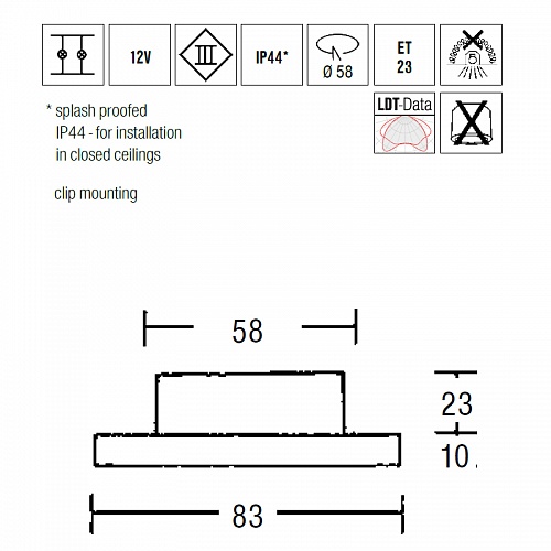 Встраиваемые точечные светильники Brumberg. 1355, арт 1355-02, цвет хром, степень защиты IP44, под лампу G4 QT9 20W 12V.