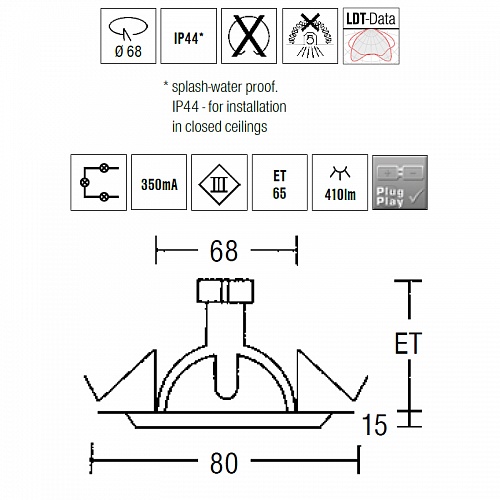Встраиваемые точечные светильники Brumberg. 2178, арт 12301253, цвет атласный алюминий, степень защиты IP44, под лампу LED 6,6W 2700K 410lm 350mA.