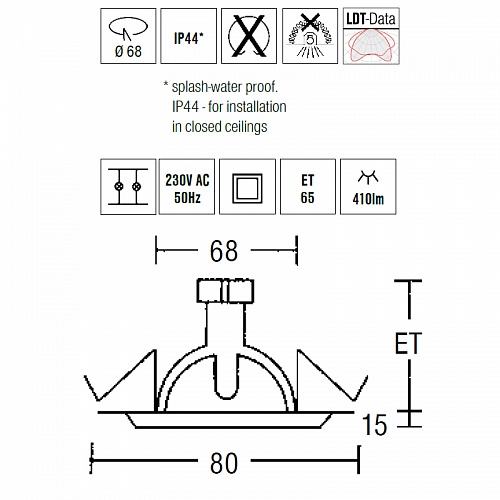 Встраиваемые точечные светильники Brumberg. 2178, арт 33301253, цвет атласный алюминий, степень защиты IP44, под лампу LED 6,6W 2700K 410lm 220V.