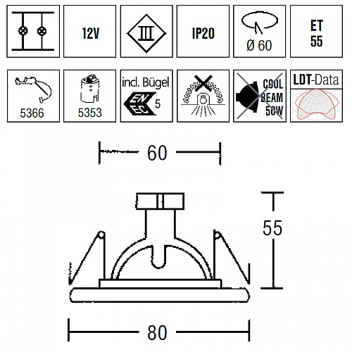 Встраиваемые точечные светильники Brumberg. 2190, арт 2190-20, цвет глянцевая нержавеющая сталь, под лампу GX5,3 QRC51 50W 12V.