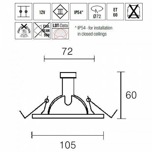 Встраиваемые точечные светильники Brumberg. 2310-22, арт 2310-22, цвет нержавеющая сталь, степень защиты IP54, под лампу GX5,3 QRC51 50W 12V.