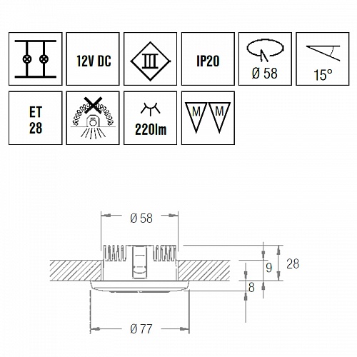Регулируемый наклон до 15°. Угол рассеивания луча 50°.