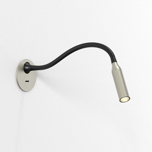 Встраиваемая лампа для чтения Lucca - это современное обновление классической настольной лампы gooseneck с гибким матовым черным силиконовым кронштейном.