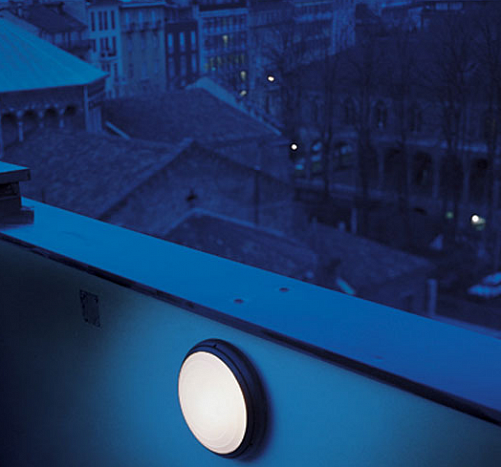 Фасадные светильники Artemide. PANTAREI, арт 2780130T, D=300mm, цвет черный, с датчиком движения и дневного света, диффузор из стекла, IP65, под лампы 36xLED 14W 3000K