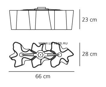 Конструкция из окрашенного металла, плафоны из выдувного стекла полированным шелком. Регулируемая яркость освещения.