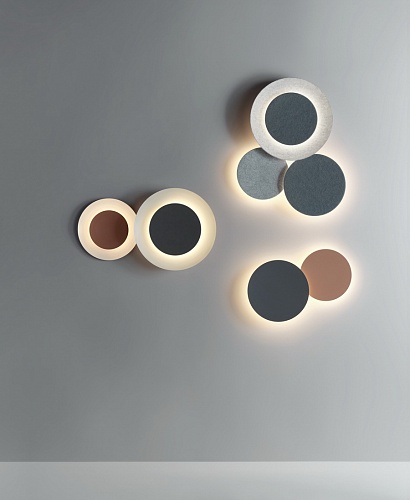 Накладные светильники Vibia. Puck Wall Art 5491, арт 5491-71-14, цвет серый войлок/темный серый войлок, диммируемый TRIAC, H=840 мм L=1030 мм, под лампы 3xLED STRIP 12,6W 700mA 2700K CRI90 4185lm.