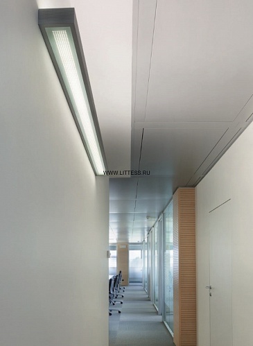 Экструдированный алюминиевый корпус с окрашенным покрытием. Рассеиватель из закаленного стекла толщиной 4 мм с шелкографией.