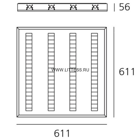 Накладные светильники Artemide. KALIFA DARK LIGHT, арт 161290M, цвет серый, с прозрачным рассеивателем, L=611 мм W=611 мм, под лампы 4xG5 24W.