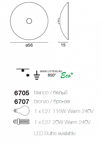 Корпус из металла окрашенного в коричневый цвет с морщинистой или хромированной отделкой. Отражатель с отделкой бронзового цвета, украшенный внутри цветочным узором в виде сериграфии.
