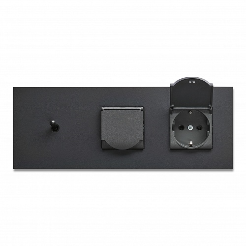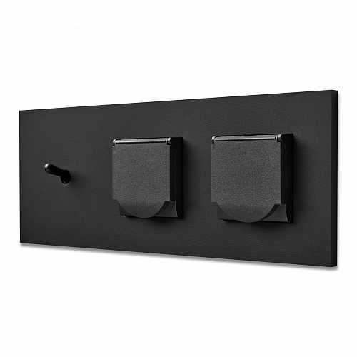 Одноклавишный выключатель и две розетки с защитой, цвет Черный матовый.