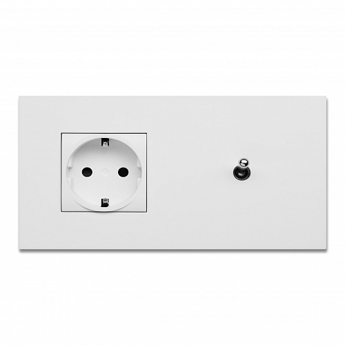Одноклавишный выключатель с розеткой, цвет Белый матовый.
